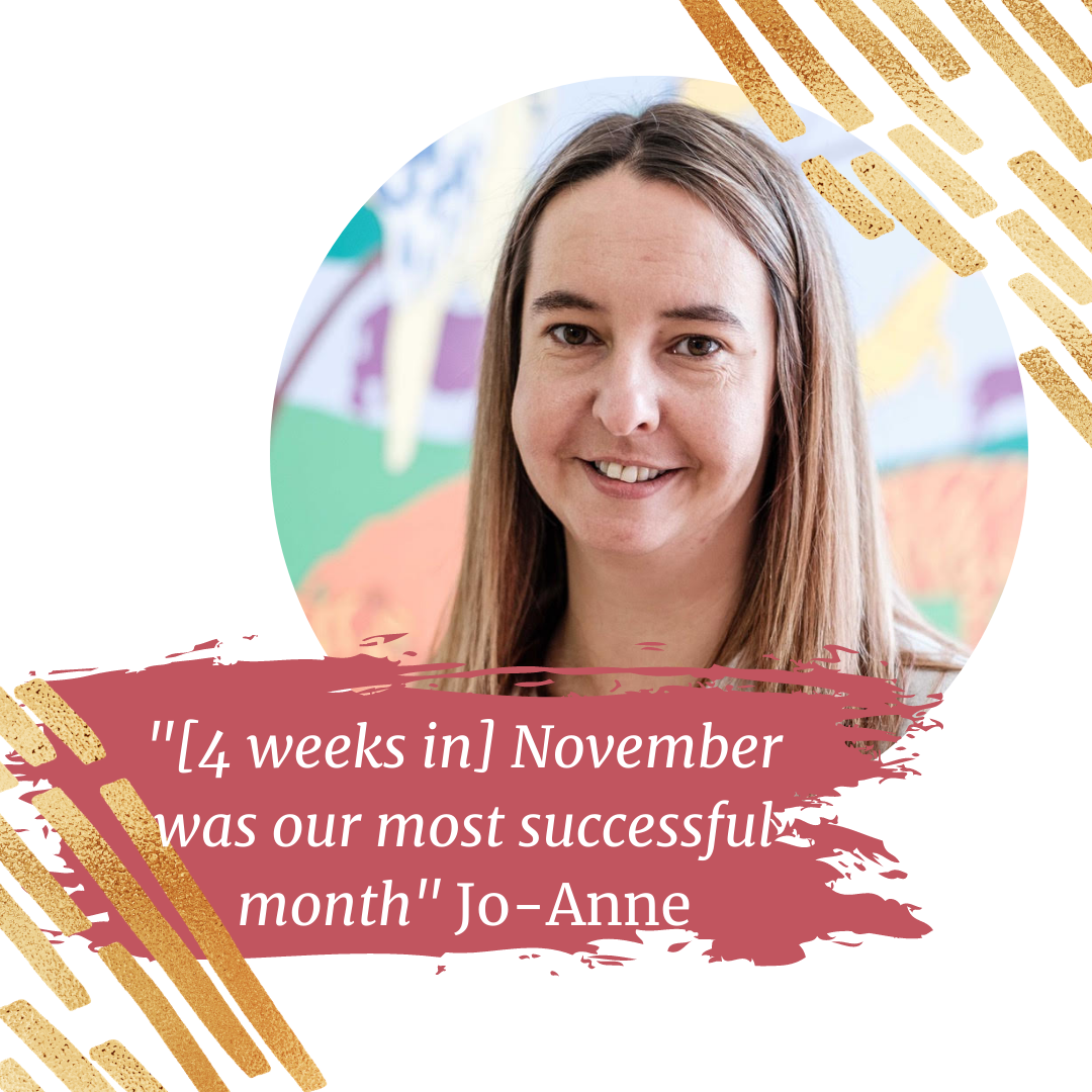 “November was our most successful month for us in regards to grant and traded income. We made £6000. [Jo-Anne maintained this for the following two months].